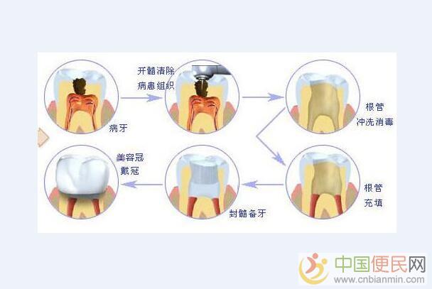 根管治疗术是治疗牙髓坏死、坏疽或根尖周病的一种方法中 国 便 民 网。是通过清除根管内的坏死或坏疽物质,进行适当的消毒,并根管充填,去除不良刺激,而促进根尖周病变愈合。